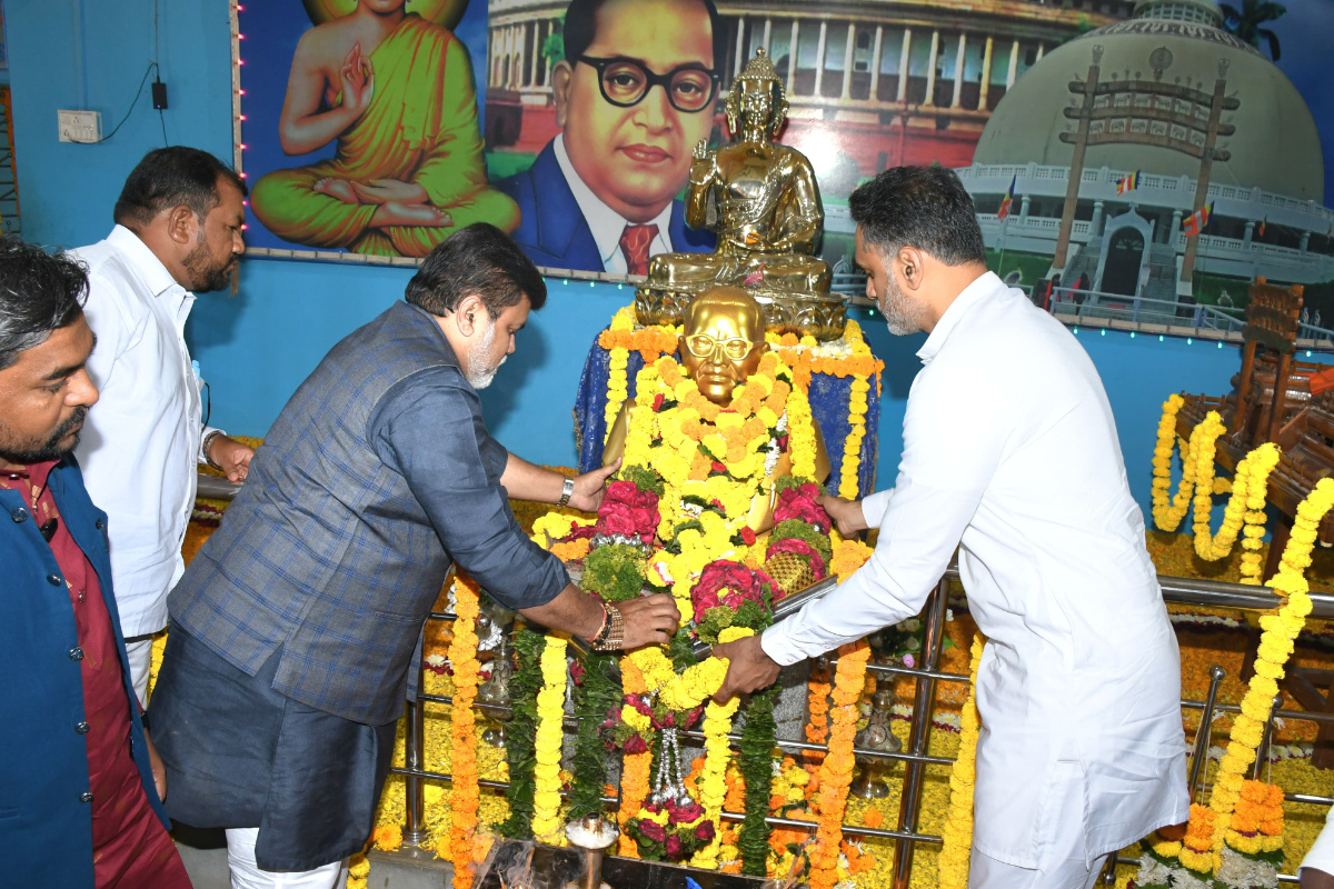 त्यानंतर डॉ. सामंत आणि राज्यमंत्री श्री. कदम यांच्या हस्ते बाबासाहेबांच्या पुतळ्यास पुष्पहार अर्पण करण्यात आला. बाबासाहेबांच्या अस्थिकलश स्थानीही पुष्पहार अर्पण करण्यात आला.