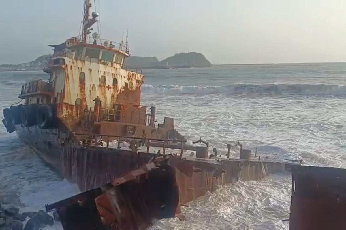 पण आता खवळलेल्या समुद्राच्या अजस्त्र लाटांनी जहाजाला मध्यभागी फोडले असून, त्याचे दोन तुकडे झाले आहेत.