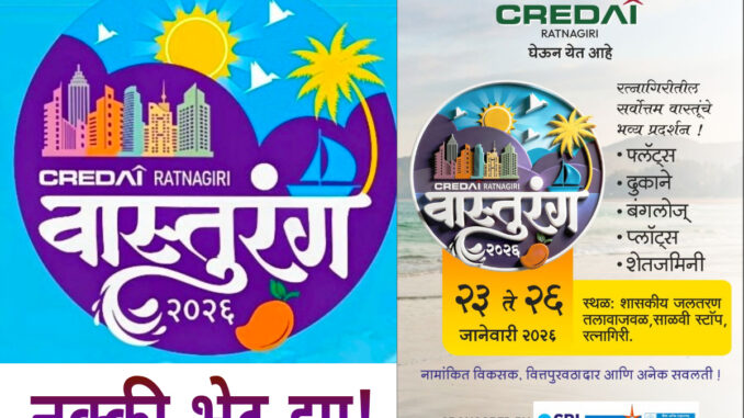 रत्नागिरी : कोकणातील निसर्गरम्य वातावरणात स्वतःच्या घराचे स्वप्न पाहणाऱ्यांसाठी क्रेडाई रत्नागिरीतर्फे आयोजित ‘वास्तुरंग कोकण प्रॉपर्टी प्रदर्शन २०२६’ चे आज (शुक्रवार) उद्घाटन दुपारी 4 वाजता होणार आहे. पालकमंत्री तथा उद्योगमंत्री ना. उदय सामंत यांच्या हस्ते या प्रदर्शनाचन उद्घाटन होणार आहे.