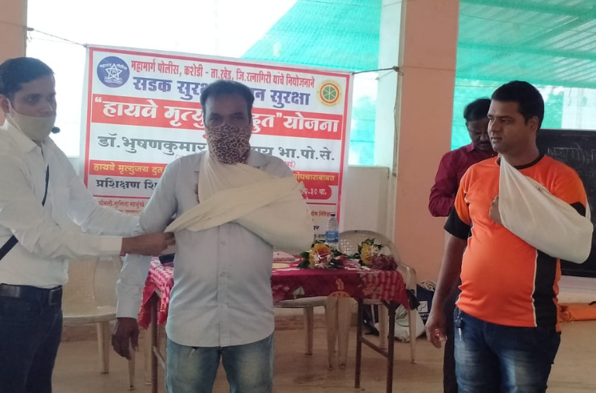 महाराष्ट्र राज्य अपर पोलीस महासंचालक वाहतुक मुंबई विभाग डॉ. भूषणकुमार उपाध्याय (भारतीय पोलीस सेवा) यांच्या मार्गदर्शनाखाली हायवे मृत्यूंजय दूत योजनेंतर्गत मृत्यूंजयदुत यांना कशेडी टॅप पोलीसांकडून प्रथमोपचाराबाबत प्रशिक्षण शिबीराचे स्वामी समर्थ मठ कशेडी येथे आयोजन करण्यात आले होते.
