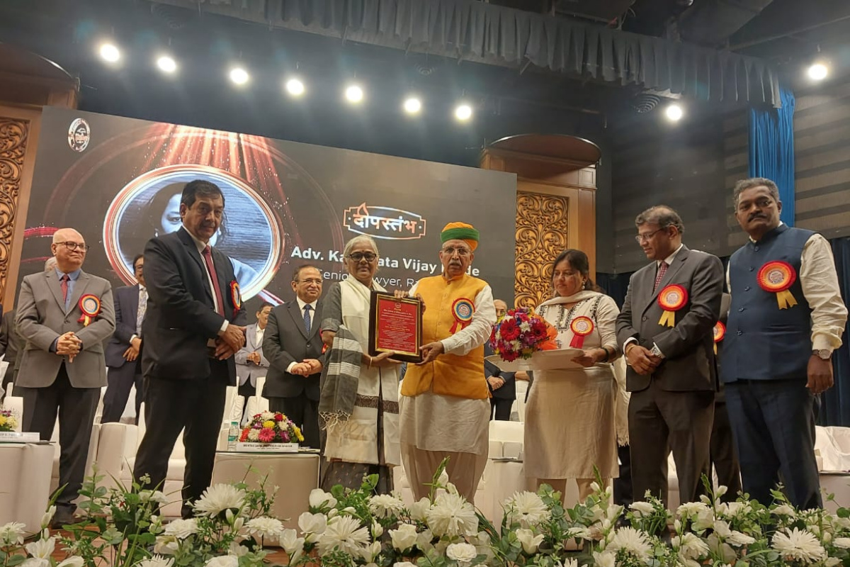 या प्रतिष्ठित कार्यक्रमात प्रख्यात, निर्भीड आणि तडफदार वकील कल्पलता भिडे यांचा केंद्रीय विधी व न्याय मंत्री अर्जुन राम मेघवाल यांच्या हस्ते विशेष सत्कार करण्यात आला.