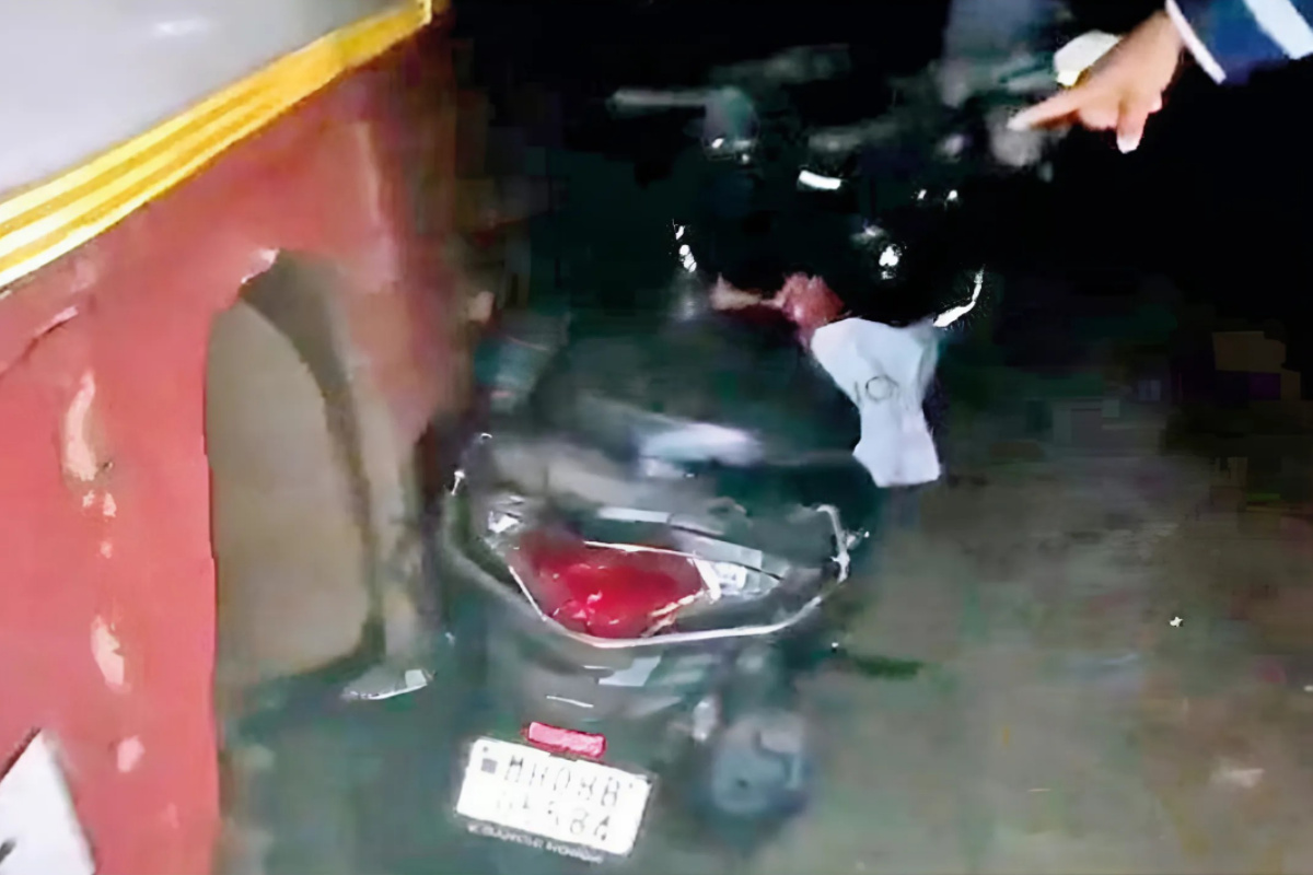 त्यामुळे त्यांचा जीव वाचला, परंतु दुचाकीचे मोठे नुकसान झाले.
