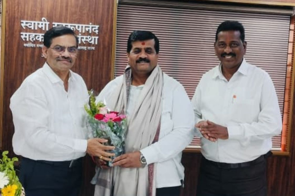 रत्नागिरी : कडवई (संगमेश्वर) जिल्हा परिषद गटातून नवनिर्वाचित झालेले संतोष थेराडे यांनी आपल्या दणदणीत विजयानंतर स्वामी स्वरूपानंद सहकारी पतसंस्थेला भेट दिली. या प्रसंगी संस्थेचे अध्यक्ष ॲड. दीपक पटवर्धन यांनी थेराडे यांचा यथोचित सन्मान करून अभिनंदन केले.