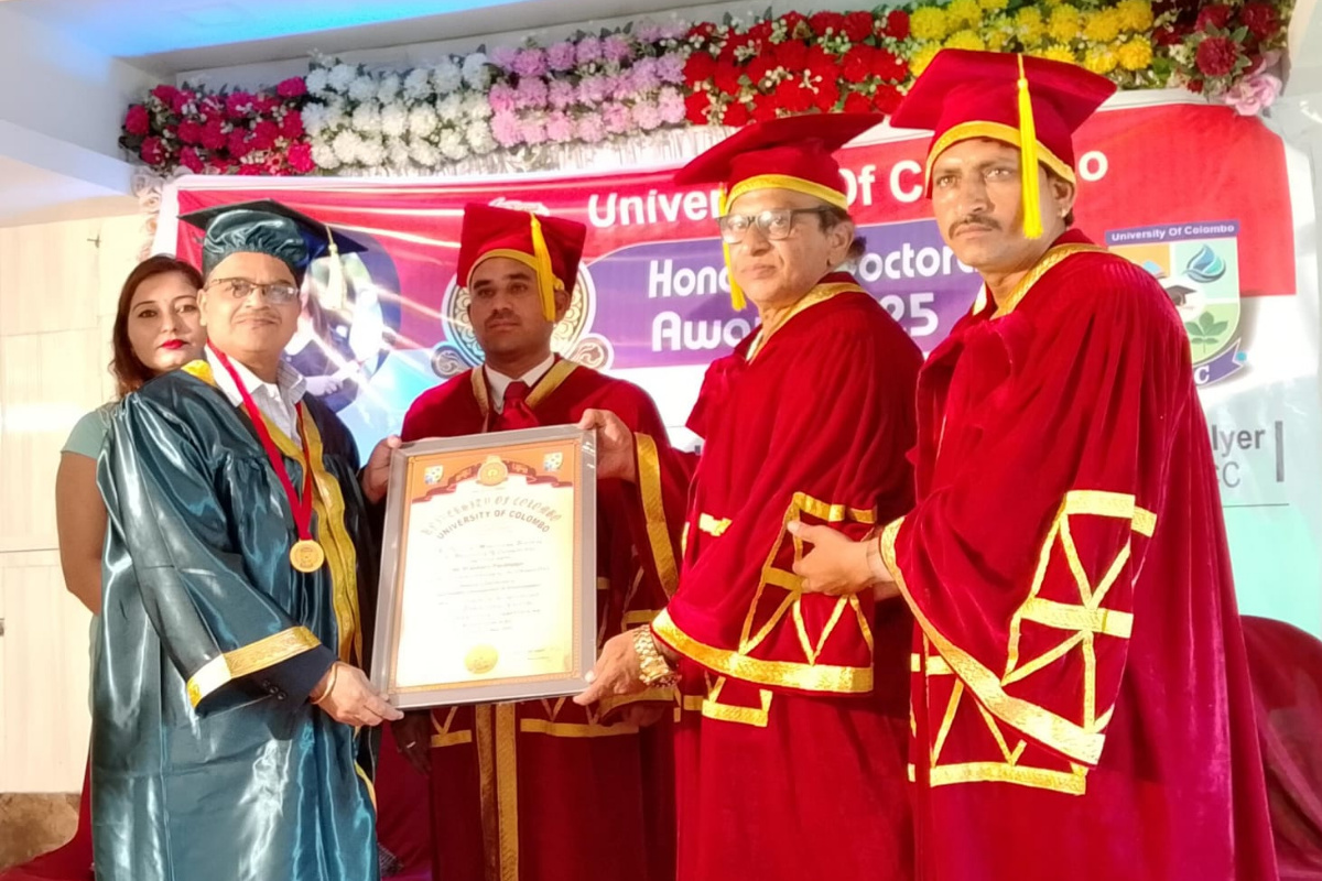 दापोली : दापोली तालुक्यातील जालगाव येथील पर्यावरण प्रेमी आणि पत्रकार प्रशांत परांजपे यांना पर्यावरण क्षेत्रातील शाश्वत विकासासाठी केलेल्या उल्लेखनीय कार्याबद्दल कोलंबो विद्यापीठाने मानद डॉक्टरेट पदवी प्रदान केली.