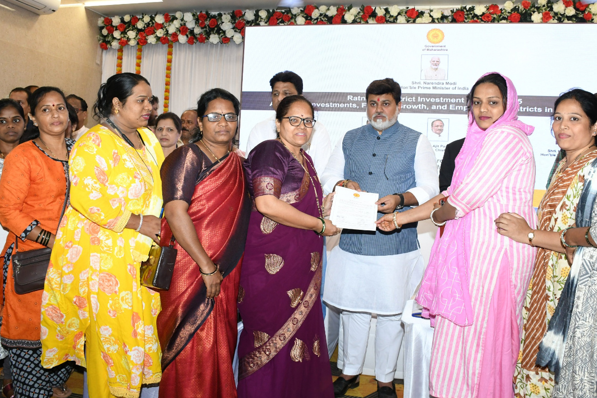 महिला बचत गट उमेद अंतर्गत चिपळूण येथील फूड ॲण्ड फ्रूट प्रोसेसिंग क्लस्टर, दापोली येथील फिश प्रोसेसिंग क्लस्टर आणि चिपळूण येथील गारमेंट क्लस्टर या तीन औद्योगिक समूहांसाठी 15 लाखांचा निधी वितरित करण्यात आला.