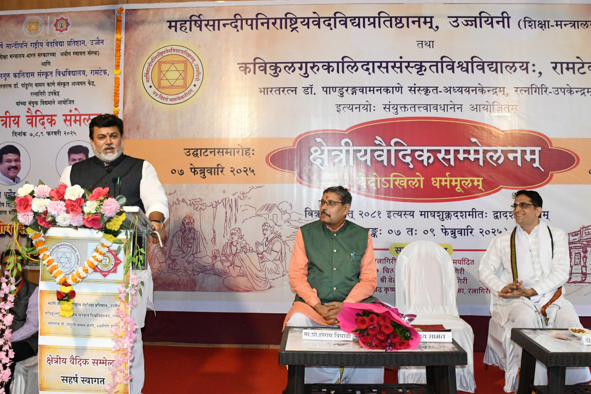 कवी कुलगुरु कालिदास संस्कृत विश्वविद्यालयाची भारतरत्न डॉ.पांडुरंग वामन काणे संस्कृत अध्ययन केंद्र रत्नागिरी उपकेंद्र आणि महर्षी सांदिपनी राष्ट्रीय वेदविद्या प्रतिष्ठान उज्जैन यांच्या संयुक्त विद्यमाने कालपासून क्षेत्रीय वैदिक संमेलन सुरु झाले आहे.
