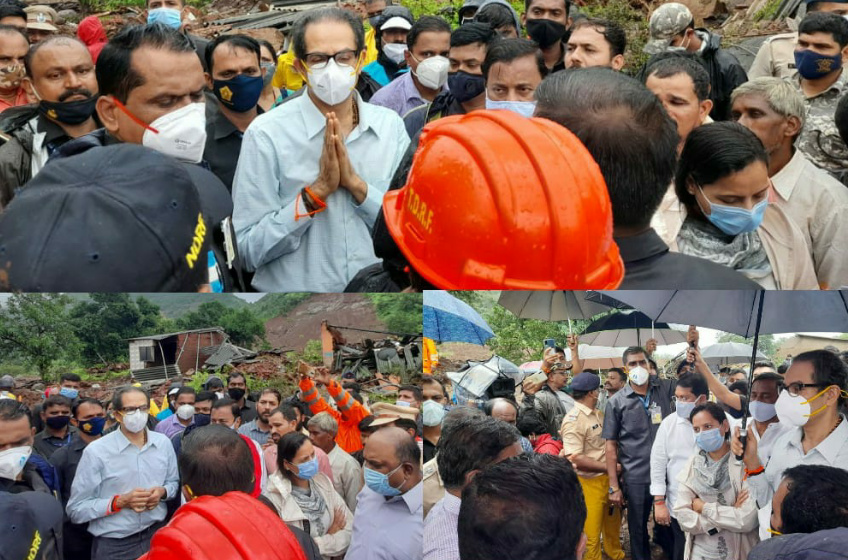 तळीये गावात बचाव आणि मदतकार्यासाठी आर्मी, नौदल, एअऱफोर्स अशा सगळ्या यंत्रणांची मदत आपण महाडच्या तळीये गावासाठी घेतली आहे. पण संपुर्ण गावावर आलेले संकटच अतिशय अवघड होते, आम्ही भरपूर प्रयत्न केले आणि करतोय. पण तुमच्यावर स्वतःचे कुटूंबीय गमावल्याने आलेली परिस्थिती खरच अवघड आहे, तुम्ही स्वतःला सावरा, इतर गोष्टींची चिंता करू नका, बाकीच्या गोष्टी सरकारवर सोडा असा दिलासा राज्याचे मुख्यमंत्री उद्धव ठाकरे यांनी तळीये ग्रामस्थांना दिला. सर्व गावकऱ्यांचे सुरक्षित पुर्नवसन करण्यात येईल तसेच कोणत्याही कागदपत्रांचा विचार करू नका, सरकार सर्व गोष्टींसाठी तुमच्या पाठीशी आहे. या सगळ्या गोष्टी सरकारवर सोडा असेही आश्वासन त्यांनी ग्रामस्थांना दिले. मुख्यमंत्र्यांनी आज संपुर्ण महाड क्षेत्राचा दौरा करत दुर्घटनाग्रस्त तळीये गावाला भेट दिली.
