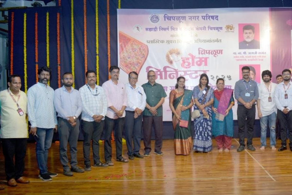 चिपळूण: चिपळूण नगर परिषदेच्या वतीने सह्याद्री निसर्ग मित्र आणि नाटक कंपनी चिपळूण यांच्या सहकार्याने १५ जुलै ते १५ ऑगस्ट २०२५ या कालावधीत आयोजित ‘प्लास्टिक मुक्त चिपळूण होम मिनिस्टर स्पर्धा २०२५’चा बक्षीस वितरण सोहळा आणि ‘होम मिनिस्टर’ खेळ सोमवारी इंदिरा गांधी सांस्कृतिक केंद्रात मोठ्या उत्साहात पार पडला. आमदार शेखर निकम आणि अभिनेते ओंकार भोजने यांच्या उपस्थितीत हा कार्यक्रम रंगला.