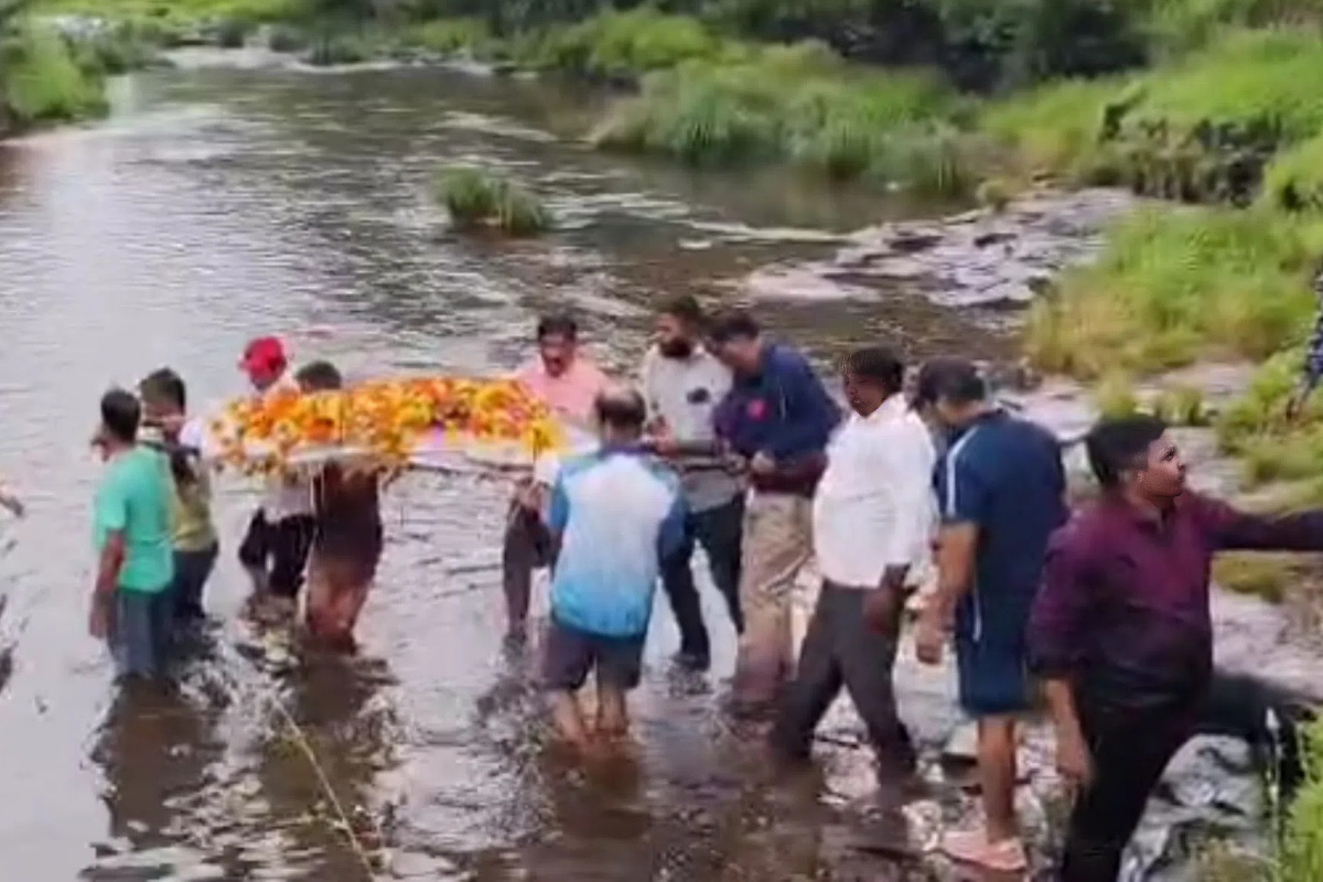मात्र, तिथे जाण्यासाठी रस्ता किंवा पूल नसल्याने मोठी अडचण निर्माण झाली आहे. विशेषतः पावसाळ्यात मुसळधार पावसात पाण्याचा प्रवाह पार करून मृतदेह न्यावे लागतात.